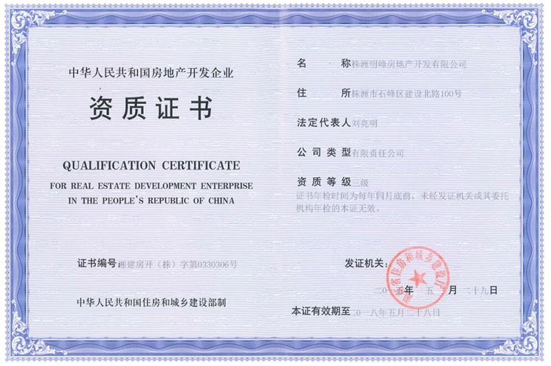 明峰房產(chǎn)三級(jí)房開(kāi)資質(zhì)